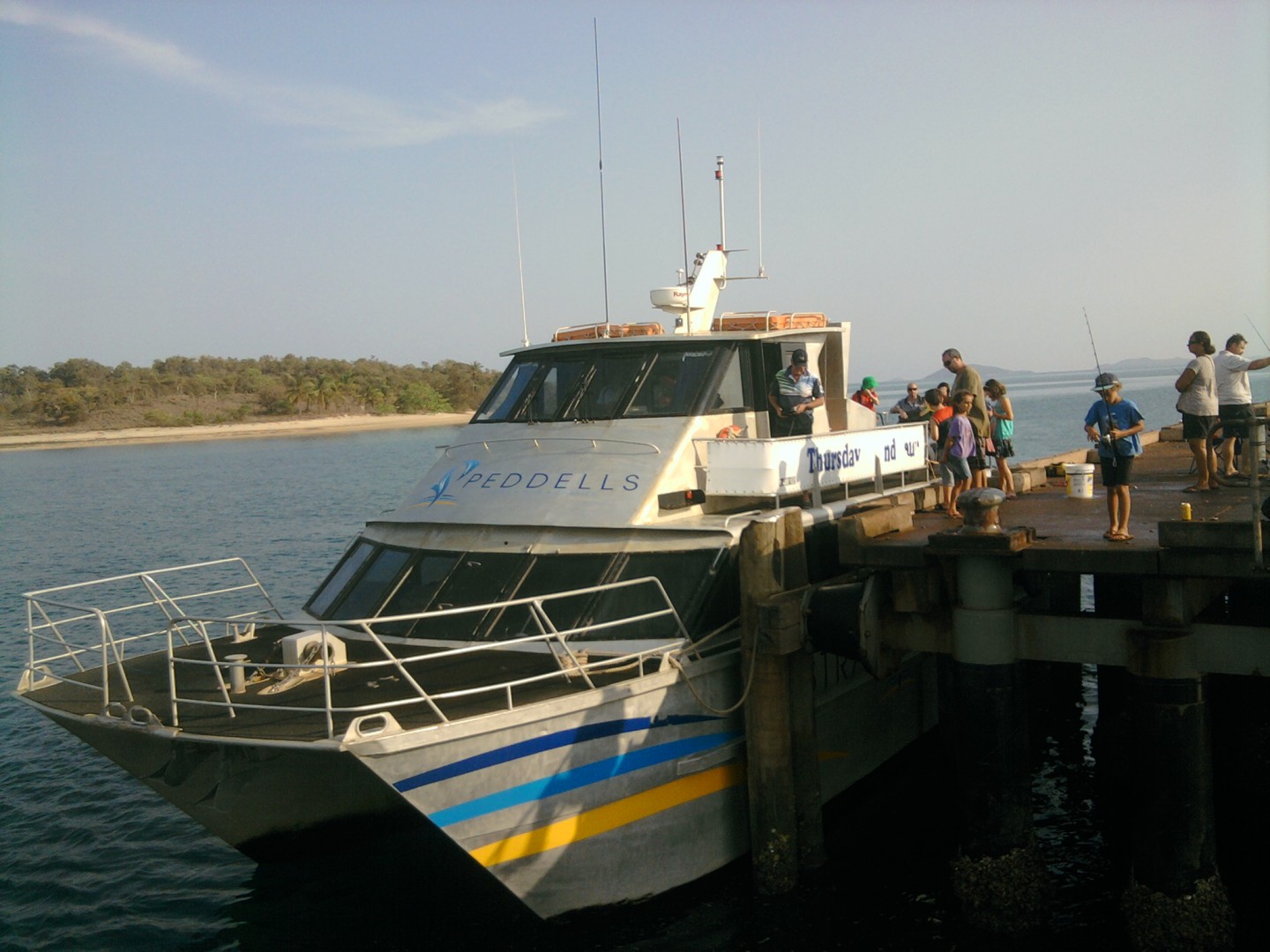 Went down to the Seisia jetty early this morn and did well .A 3.5kg queenfish, which was chased by a 4m whaler shark, but we landed it after a an entertaining fight.Vanessa,my nephews spouse, is going to make Numace, The Thursday Is version of raw fish with the fillets tonight.The ferry to TI came in while We were there. $145 each return, up.