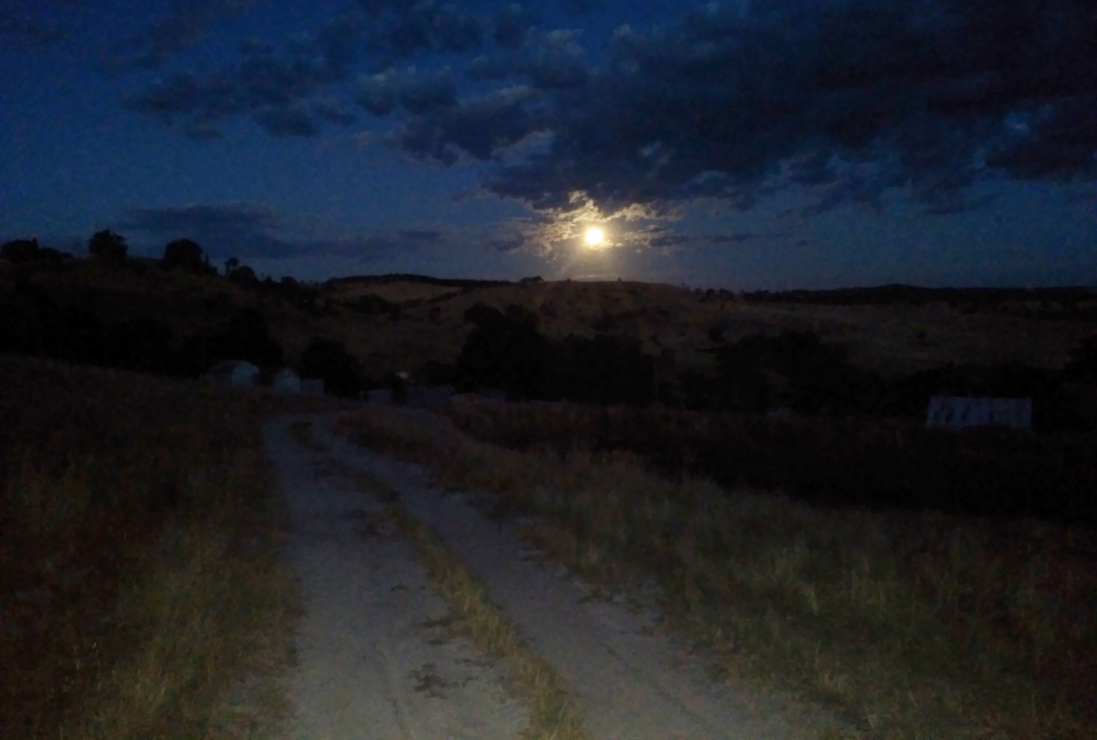 to all......Hope 2018 is the best!!! The farm at Oberon NSW is getting rather hot in the 40's dry now and without any significant rain the dams are turning into mud holes. Had a visitor on the back verandah today... a brown snake sent him packing. Managed some great photos of the full moon rising over the farm.... beautiful. Gwynnie