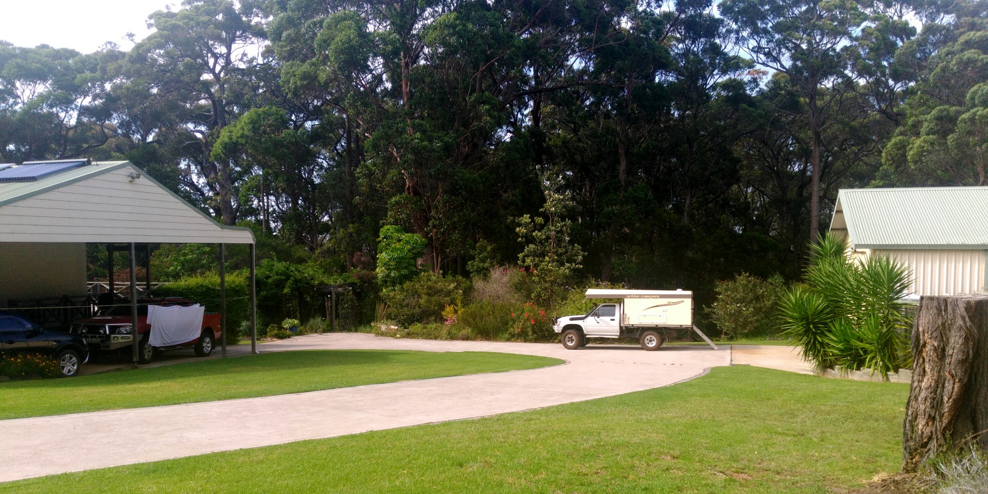 Hello all, Left the the 45 degree heat & a the million flies of Western NSW! I am heading to Tassie to cool my heels for the next six weeks !!! Going Via south Coast NSW & stopped off to see friends at Bermagui for a few days before catching the Ferry to Tassie. They were in the middle of a wonderful storm with lightning, thunder and welcoming rain. Today the sun is shinning again.. so great to be in the greener, cooler & wetter climate for a change instead of hot dry . Gwynnie