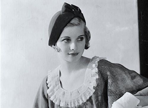 You're all going to kick yourselves when you hear who it is :) Don't let the hair do or general 'look' fool you. This is a recent photo of a currently popular actress. It was part of a photo shoot, and that pic was meant to look like someone from a previous era. Her facial features are a dead give away once you know you're looking at someone who's still on tv today.