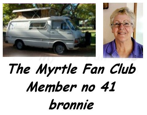 I just had one of my brilliant ideas!Why don,t we make some "I love Myrtle" tshirts! I have a program that print iron on transfers, and people could supply their own tshirts, or anything else you could put a transfer on.Proceeds goto the fix Myrtle fund(send it to me). Only kidding about the money.