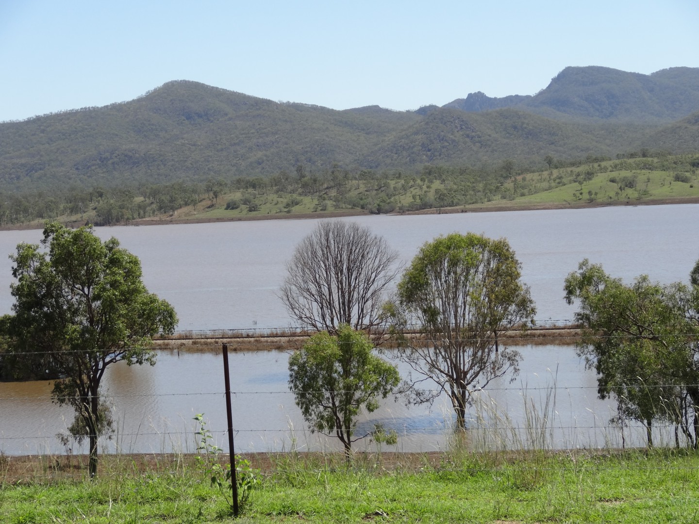 I was there in Oct. , and the water was 500m away. Got an 80cm barra, and a few redclaw. Lovely spot. Go in from Caliope, and back that way.Good facilys in Caliope. Many Peaks road NOT recomended for caravns or motorhomes. Bill