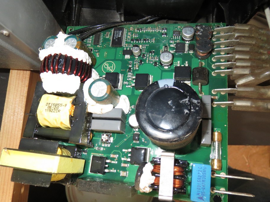 The Large Black Capacitor is it Bulging a bit.. Sort of Look's Like it has popped.. - Does it smell funny..?