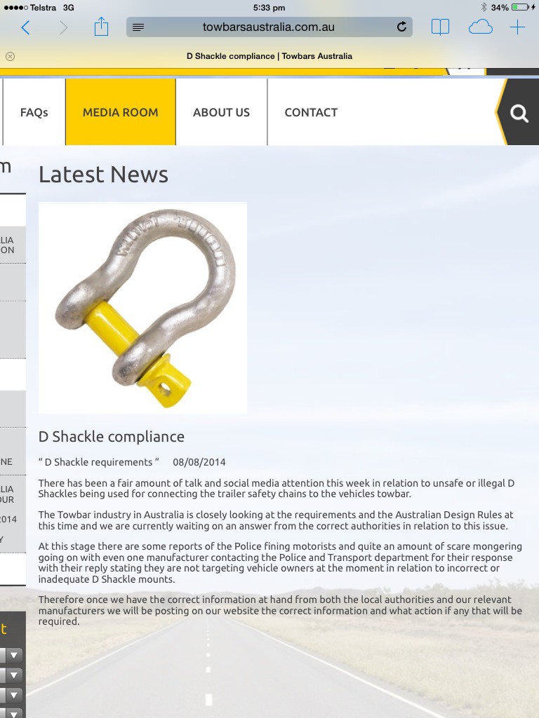 The towbar on my Navara will not take even a 2 ton rated shackle due to the small drawbar connection. If a drawbar/vehicle is supposed to take 3 tons as is our case it will require a shackle of about 4.5 ton rating to be compliant with the recommendation (1.5x atm). The same applies to my Rodeo work vehicle which will only allow the shackle pin to attach to the bar. If towbar manufacturers who supply vehicle manufacturers can't get things right how can we lower mortals be compliant? Cj