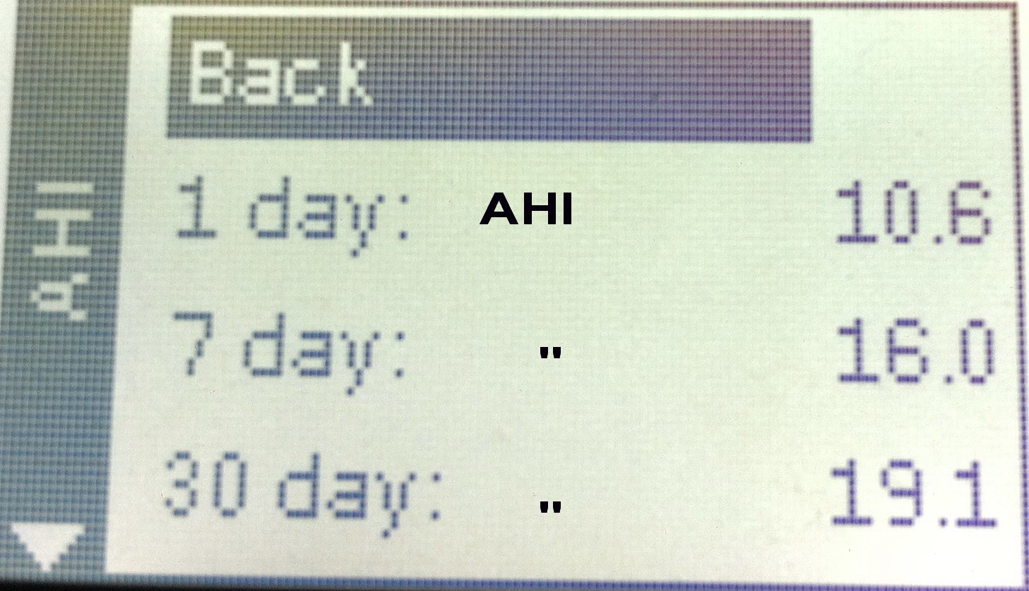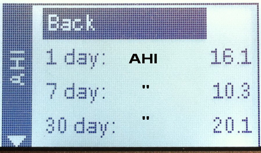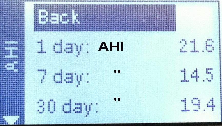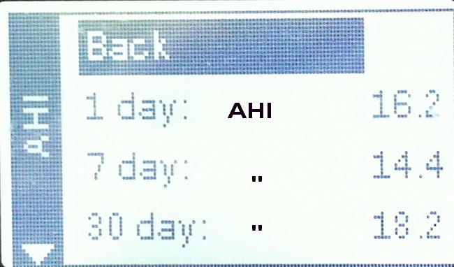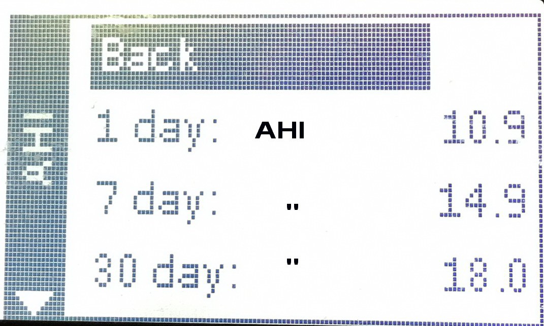 Oops, per hour, not per day.AHI (Apnea Hypopnea Index) is the number of apneas and hypopneas per hour. Or an index for sleep apnea. 5-20 mild, 21-50 moderate, above 50 severe.
