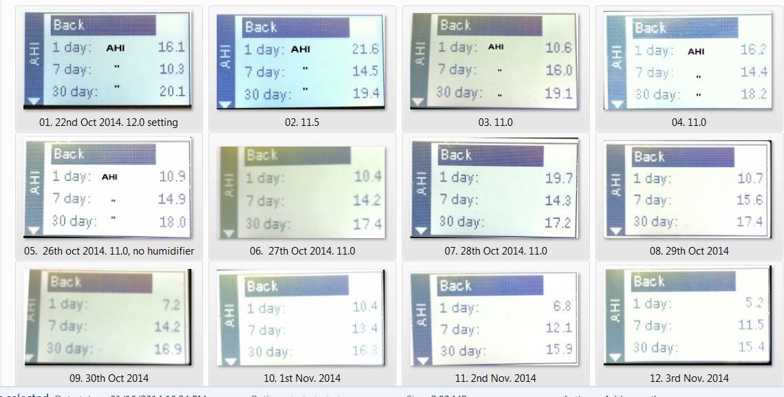 We continue the CPAP journey, these are the results from the last 5 nights. As a matter of interest I wonder what setting all you CPAP users out there are using?