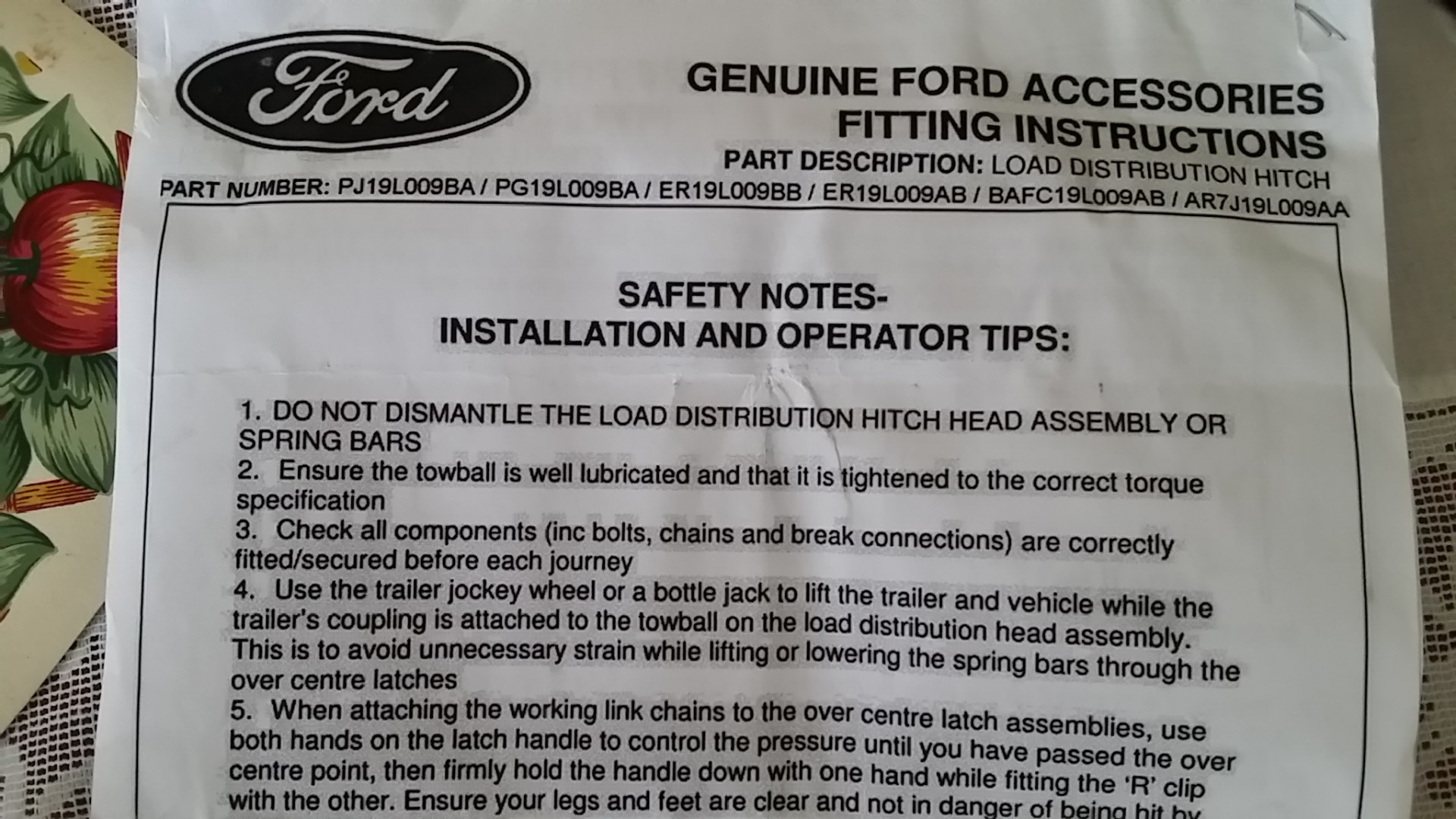 I have just finishing fitting my genuine Ford HD Tow Bar, I also have a Ford Load Distribution Hitch