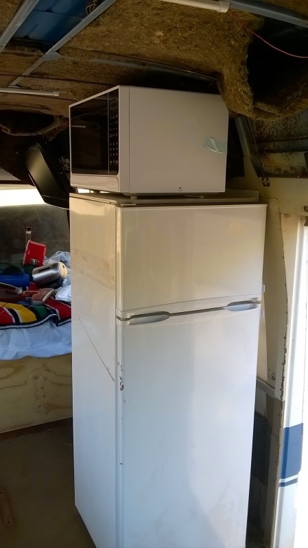 A few more additions, most importantly, the beer fridge is secured in place, as is the microwave aka pie warmer atop