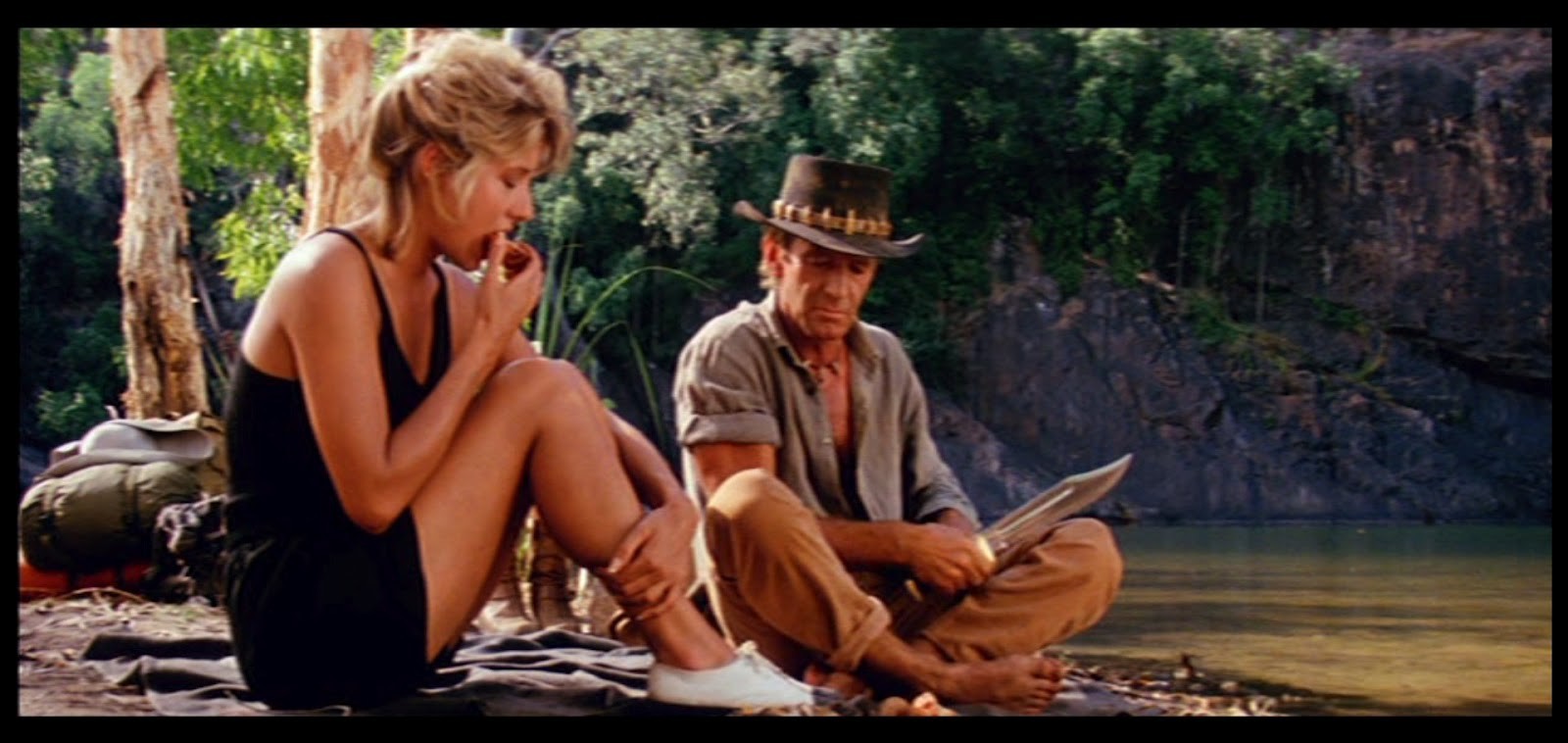 I know what you mean Bruce...I pondered on this pic for 5 minutes before I realized Mick Dundee even had a knife...at least dressed like that she would have kept the flies off his cooked snags......lmao.....Hoo Roo
