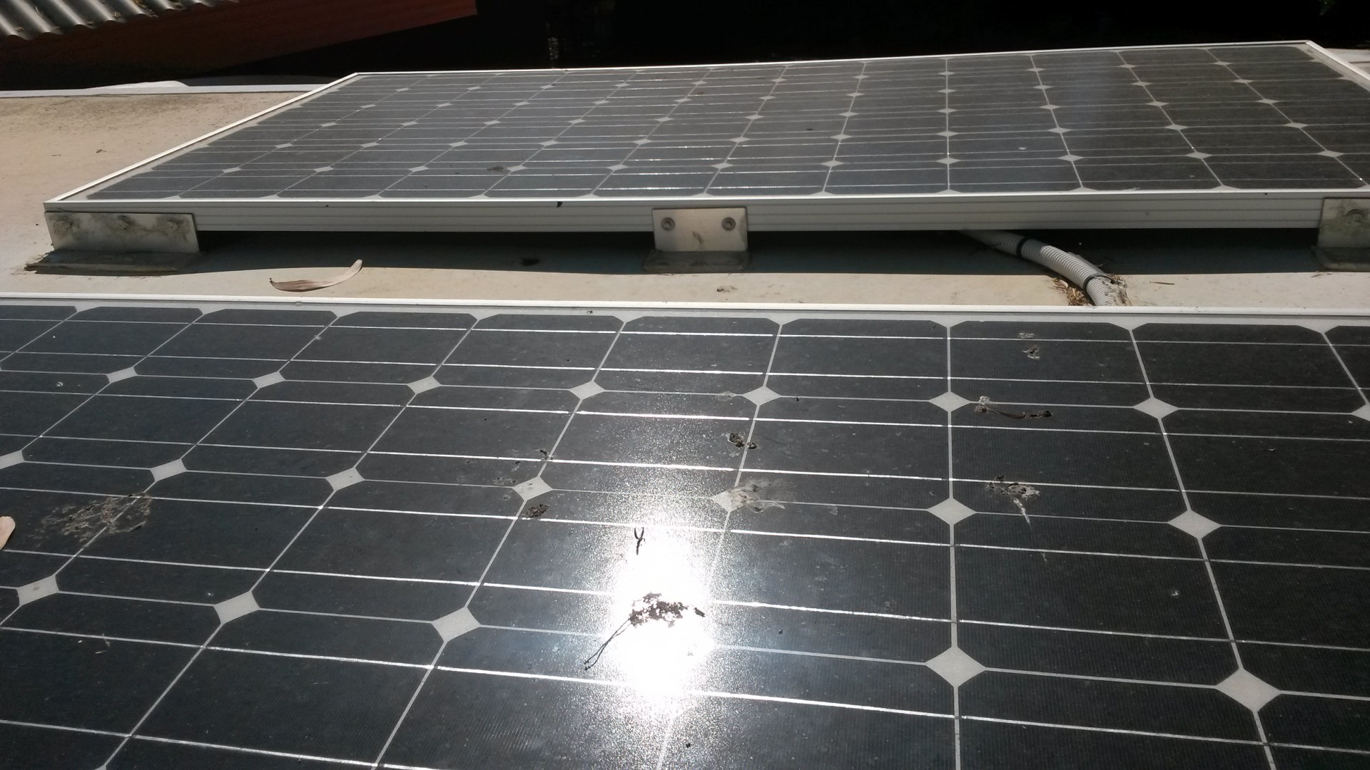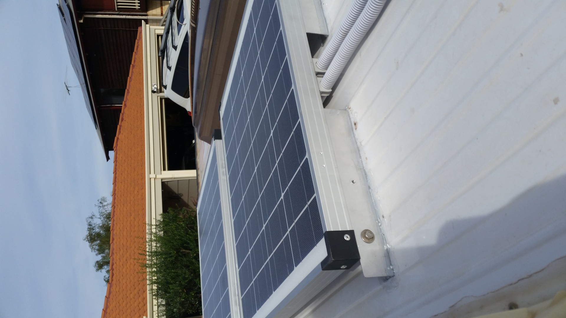 Just a note of caution regarding the set up in the photo, cover the MC4 connectors to protect them from the direct sunlight as the harsh Aust UV affects the plastic and the clips break off resulting in the plugs not remaining firmly connected, a failed connection is the end result.