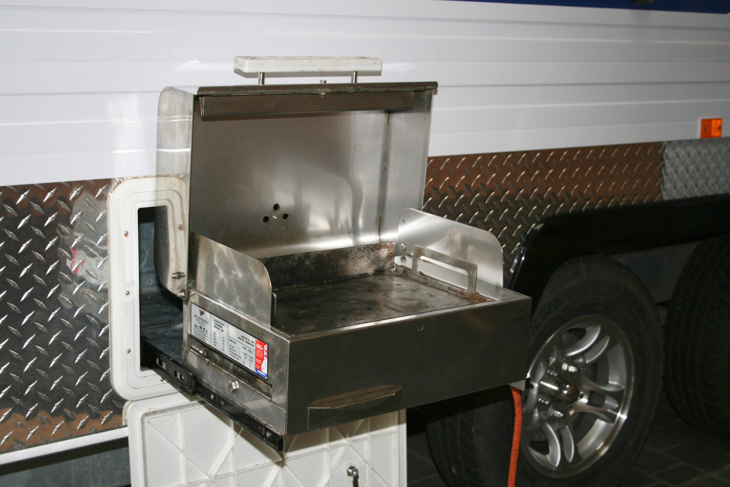 We purchased our van second hand as I have said else where, the caravan come with a buit in slide out Australian Brushtracker bbq.