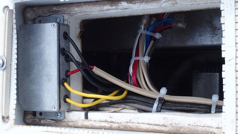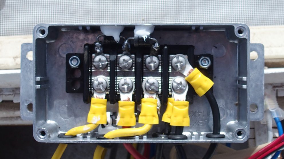 The second and third picture show the second junction box, 4x diodes installed, and the box mounted up in the fridge vent area. This job is done, only the third panel to go.
