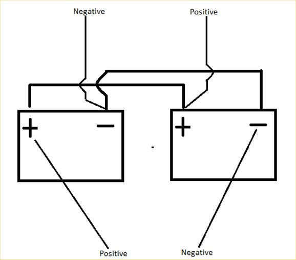 The first picture is how I have wired the two batteries, the second picture is how I should have done it, please explain why, I have an idea of why, I just need my reasoning confirmed, that I may have only been charging up one battery, with the other left in a less sate of charge.