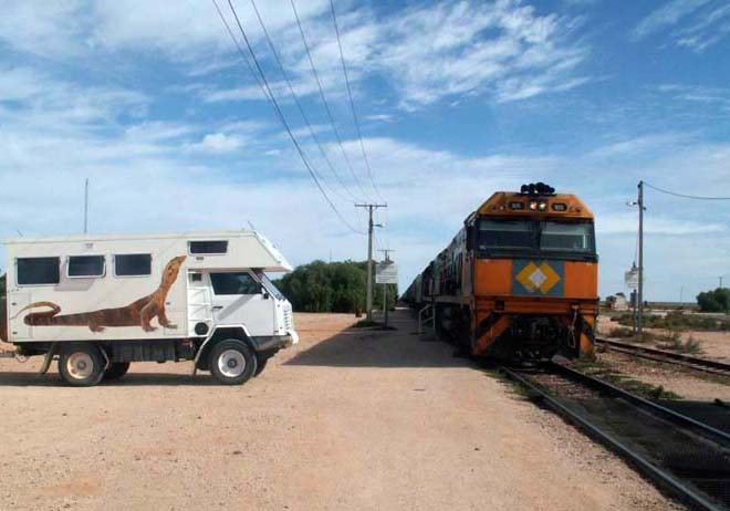 Drive north from Nullarbor roadhouse via Knowles Cave to Cook on the railway line. No problems for anyone to do that, even with most vans (we were towing a boat).