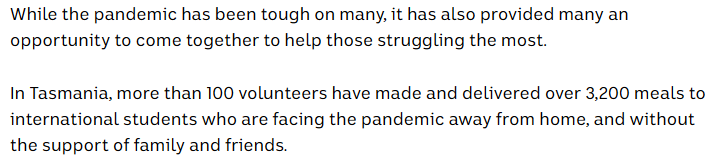 The pic tells a good news story about volunteers helping students who are away from home, without the support of family and friends