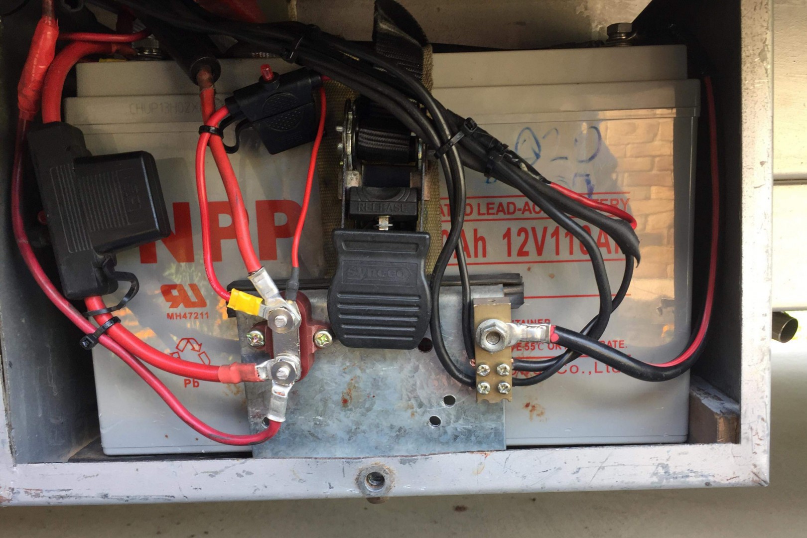 Next a secondhand 2013 85 amp blue battery was added to compliment the orignal 100 amp battery.