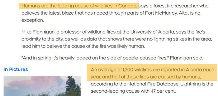 Here's some figures relating to my post that 85%of fires are started by humans: