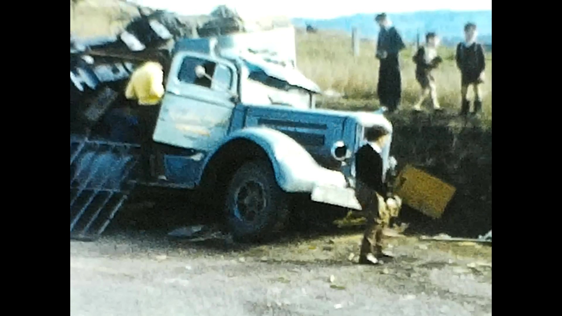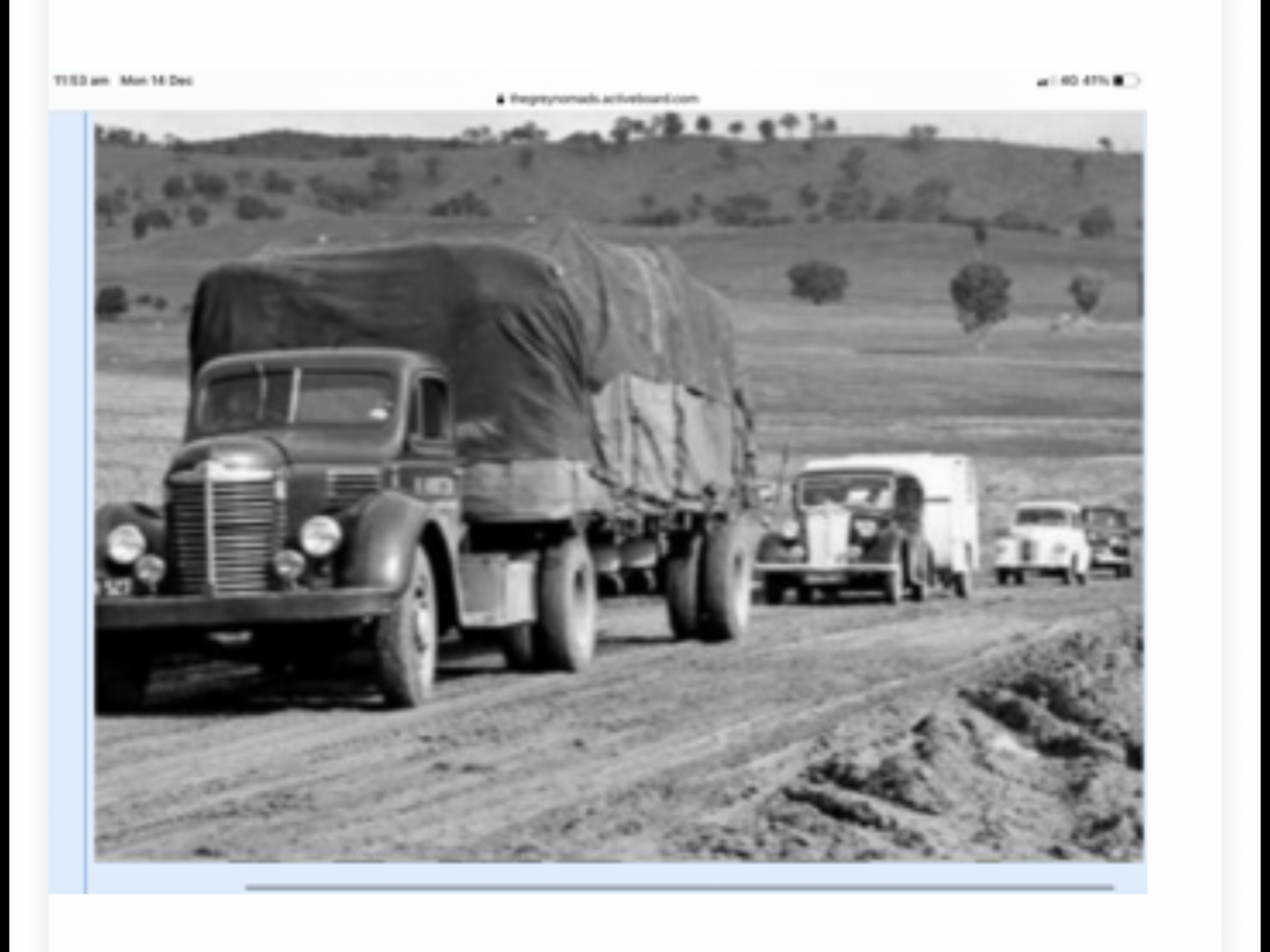This is just South of Gundagai on the Hume Hwy in 1956 .... this truck ran into the rear of our friends caravan (completely demolished it ) but there were no injuries. (that is me in top right corner of pic.. I was 9 years old and still remember the incident well.) We were travelling North in a group of 3 caravans .