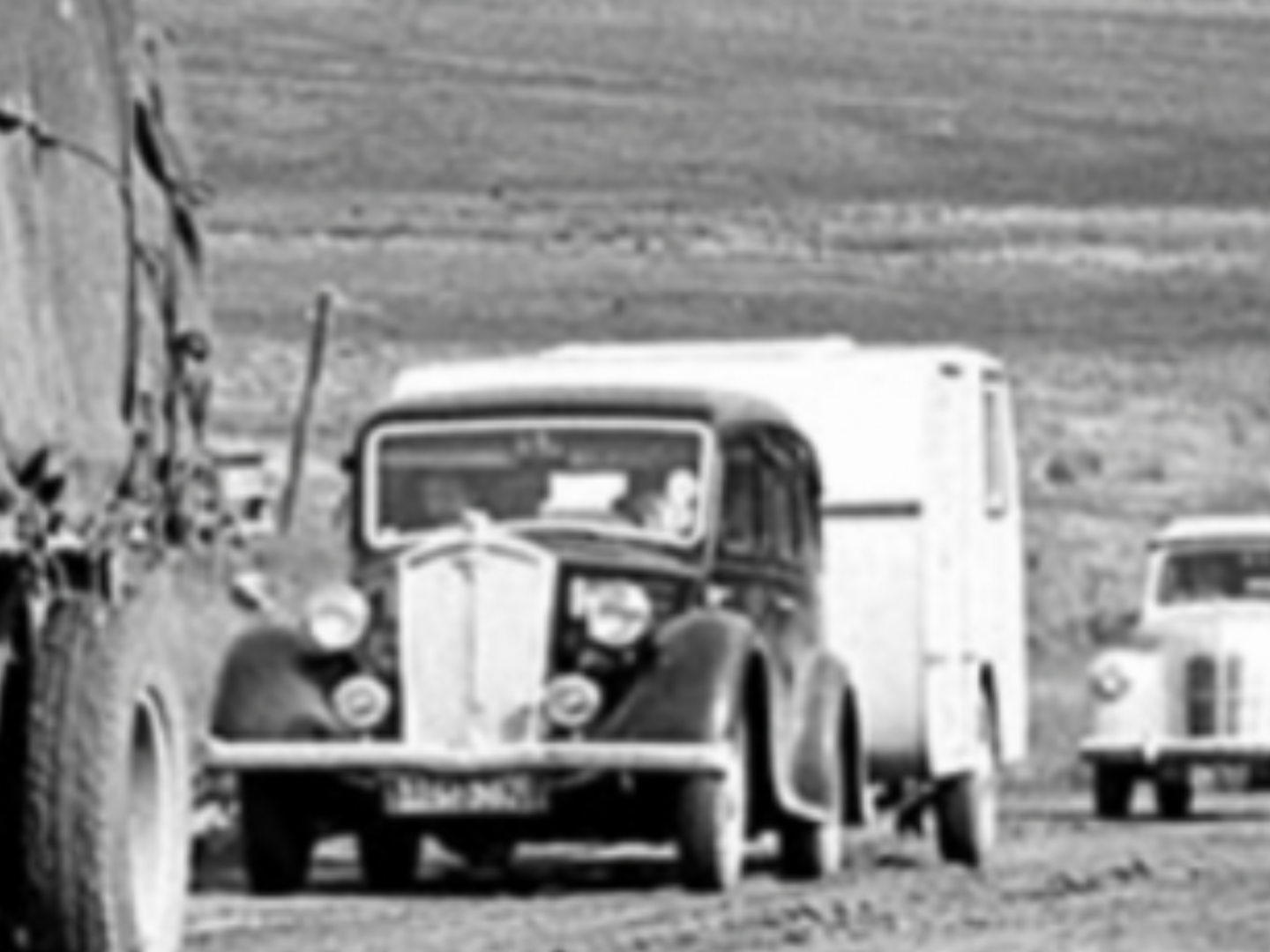 I think the car that Doug is driving and towing the caravan may not be a Pilot. We had a Pilot when I was a little kid and I am sure the windscreen had more of a downward curve in it. There were not many models of them and they were replaced by the Consul and the Zephyr. I think the Pilot were a British car made by Ford. I am not sure but if I was having a guess I reckon it might be a Wolseley.