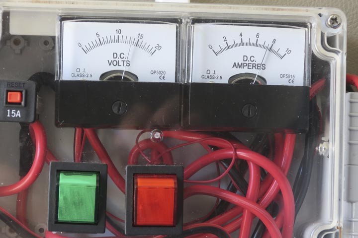 I recommend a couple of panel meters. The voltage is for the batteries & the amp meter is the raw voltage from the solar panels (this was temporary for a test with the 6 x 20w panels in parallel). My controller provides the output via Bluetooth to the phone. The analogue meters you can read as a glance. I have compared them with my DC clamp meter & they are spot on.