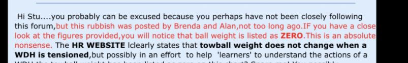 That is a big call considering all the facts already shown by demonstration on a weighbridge and by a printed fact sheet from the biggest WDH supplier in Australia. In case you forgot it was me who contacted HR after comments directed at me in a previous topic and it was HR who directed me to their weighbridge spreadsheet record as has been repeated and pasted in this topic.