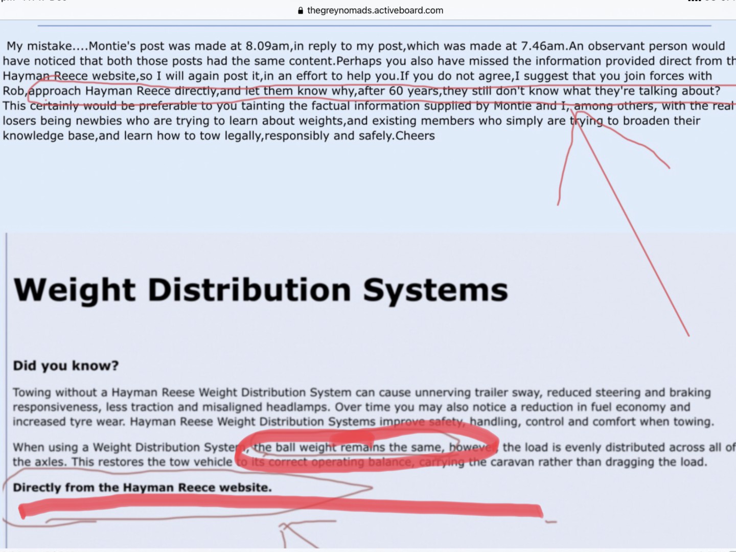 Ian,could I respectfully suggest that you too approach Hayman Reece and let them know that they've been doing things wrong for 60 years.See screenshot below.This topic has been covered many times on this forum,and I have fully explained the facts to the non-believers,all of whom,with one notable exception,have come to understand that a WDH DOES NOT change towball weight.If you care to search on this site for "Effects of WDH" or something similar,you will find much helpful information.Cheers
