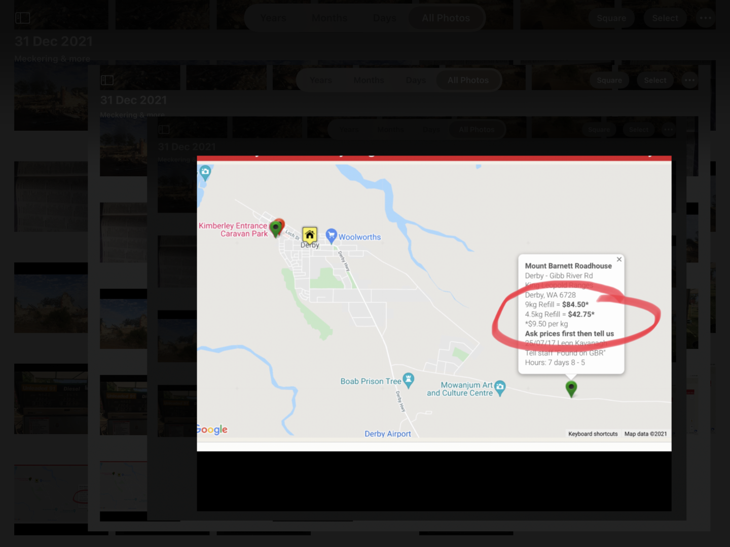 my goodness Yobarr your playing with yourself again you said a bottle was 80 odd dollars in derby now it seems that was just hearsay and you put a photo of mount barnet roadhouse to show the price of gas in derby?? if you have been to derby you will know the roadhouse is at least 300 klms from derby its saying fuel is $1 90 in perth then putting up a photo of fuel prices in southern cross