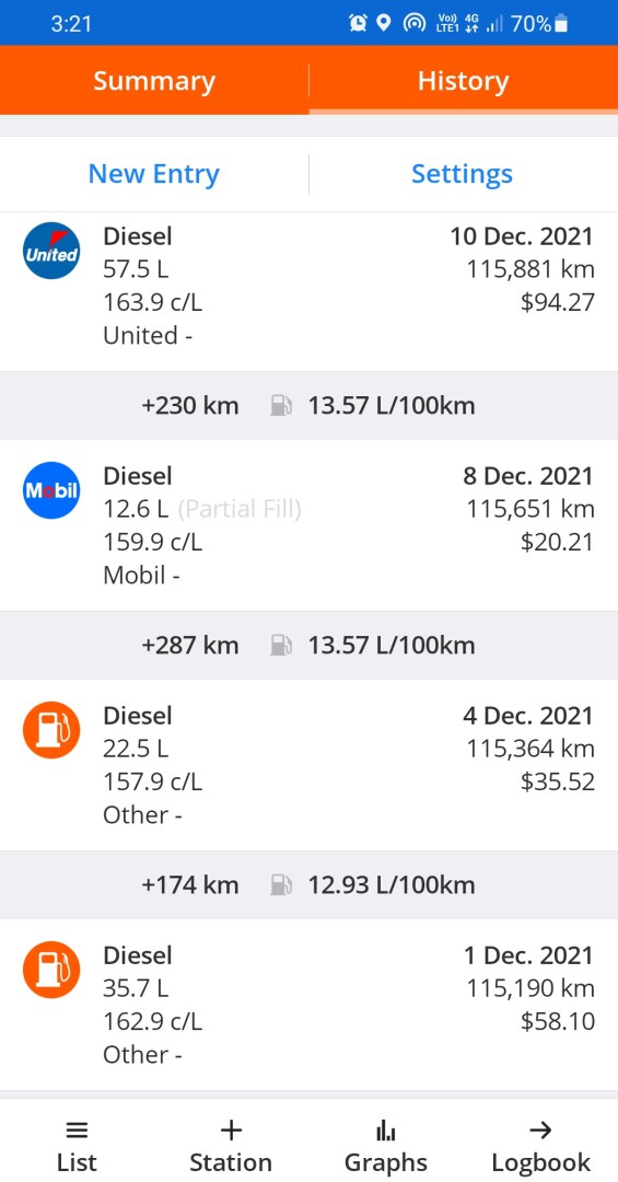 In my case, travelling up through the centre and down the east coast it averaged about $26 .... mixed refills and Swap n Go.