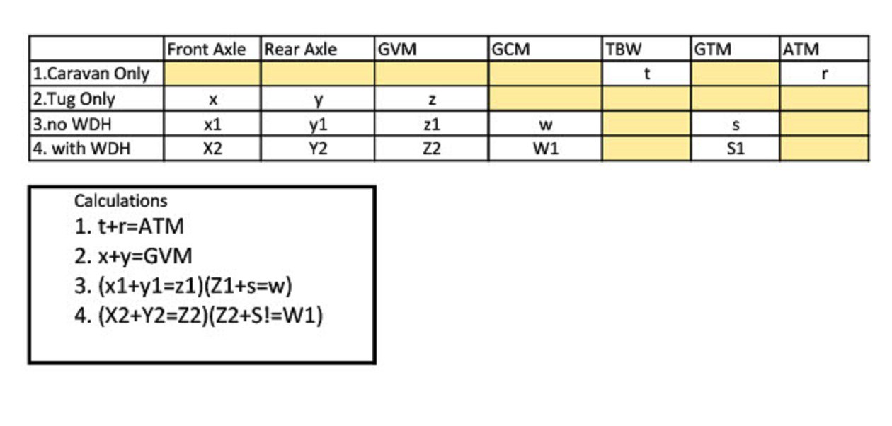 The "axle weights" of the caravan need to be shown "before and after" as well - pretty important part of demonstrating the effects of a WDH. KB