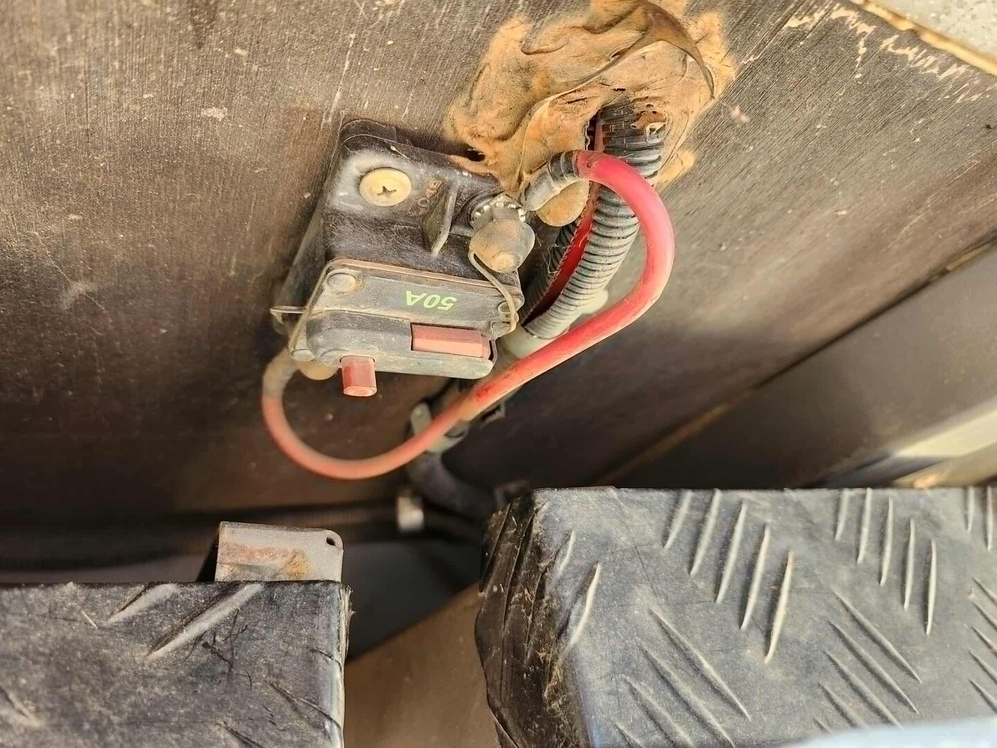 only thing I found under the Caravan Tim was this overload cut out down near the batteries.I don't know if it made any difference but I broke and then reset it then took some more readings. the batteries were showing 13.9 ( would have been some light on the solar panels) and Anderson plug on A frame which is 7 meters away was at 12.5 I could not follow the complete wiring harness as it wanders in and out behind the cupboards and through the floor on its journey from the draw bar to the battery boxes under the rear of the van. also wondering if you have any feedback on some of the Batteries being sold by Kings 4x4 superstore. Cheers Dave