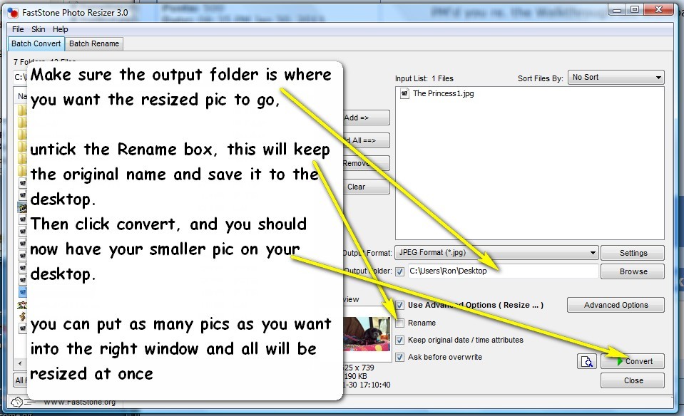 suggest you try to use that Faststone program try it on one pic and then post that pic here