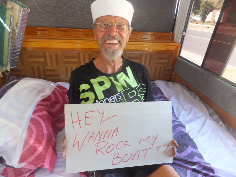 .......................Captain of the stud ship !!!!!!!! WOW now that is the Hilton on wheels...also Billeee there is a nudist beach around 40k from Frankston and a few scattered along the murry...Not that i have visited any,but know a few who visit them for the all over tan excuse. So maybe John can set up the bus to sell muffins there to make a few $ to help in the fuel department...Or he even could set the bus up as a first aid station for all those sun burnt bodies.