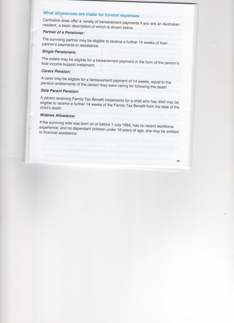 I assume that when you prepay, the funeral directors make up for any later increases in their shortfalls by the interest they get on the money you have prepaid. Someone told me (I haven't checked with Centrelink yet) that Centrelink count prepaid funeral amounts as a deemed asset. If this is the case, then you could find you are being deemed on that amount each year as though it was earning interest. But I am not sure it this is the case.