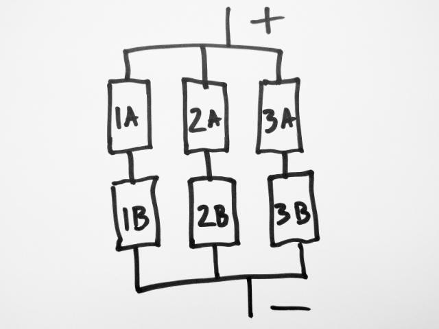 Now we come to the third scenario, 2 or more panels in a parallel arrangement also in a series array. Now all the panels in parallel would need to be shaded for those panels to be subject to the possibility of a reverse current flow. If only one of the panels in the parallel arrangement is in the sun, both panels would be seen as being producing some output and therefore it would not suffer reverse current flow. Because there is a difference between the input and output voltage, the current path could be compared to being lubricated to improve the flow .... yeah I know, terrible analogy :lol:
