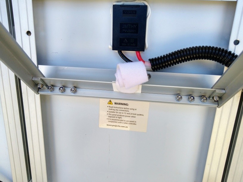 Or I would have to drill a hole in the top end of each frame near the hinging side for wiring & that would be in the way of the cradle the panels sit in on the roof rack.