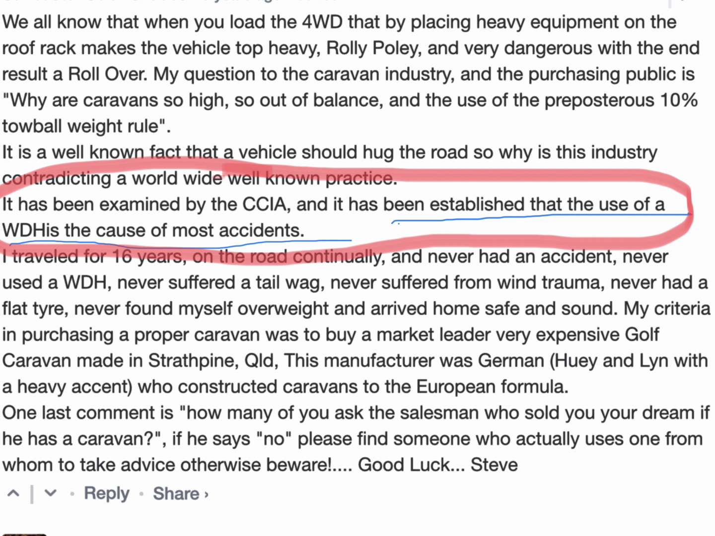 Hi Greg...please note that both my screen shots were from discussions on weights.The CCIA is the Caravan and Camping Industry Association,in Australia,while the other article is written by the US Society of Auto Engineers,with particular reference to SAE J2807,to which Gundog regularly refers when discussing weights etc.Pointless shooting the messenger,surely? If you have strong feelings about these things,perhaps you could contact these people,telling them the error of their ways? From our PMs I soon realised that you know what you're talking about,so I am somewhat puzzled by your stance here.Cheers
