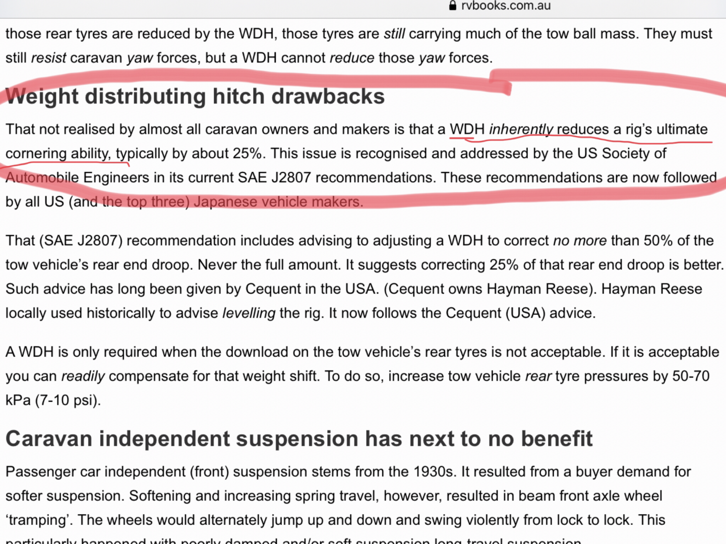 I don't know who writes some of the crap you dig up yobarr but that last article contains some of the most blatant drivel I have ever read. Yes a poorly adjusted WDH can have disastrous consequences and if you are going to tension the thing so far up that the wheels are practically off the ground, I would expect an exit into the scenery. Poorly selected suspension upgrades have have an equally disastrous result. But a properly adjusted WDH most certainly improves stability, steering response and moreover braking distance. You can make a race car be the most evil thing on four wheels too if you don't set it up correctly.