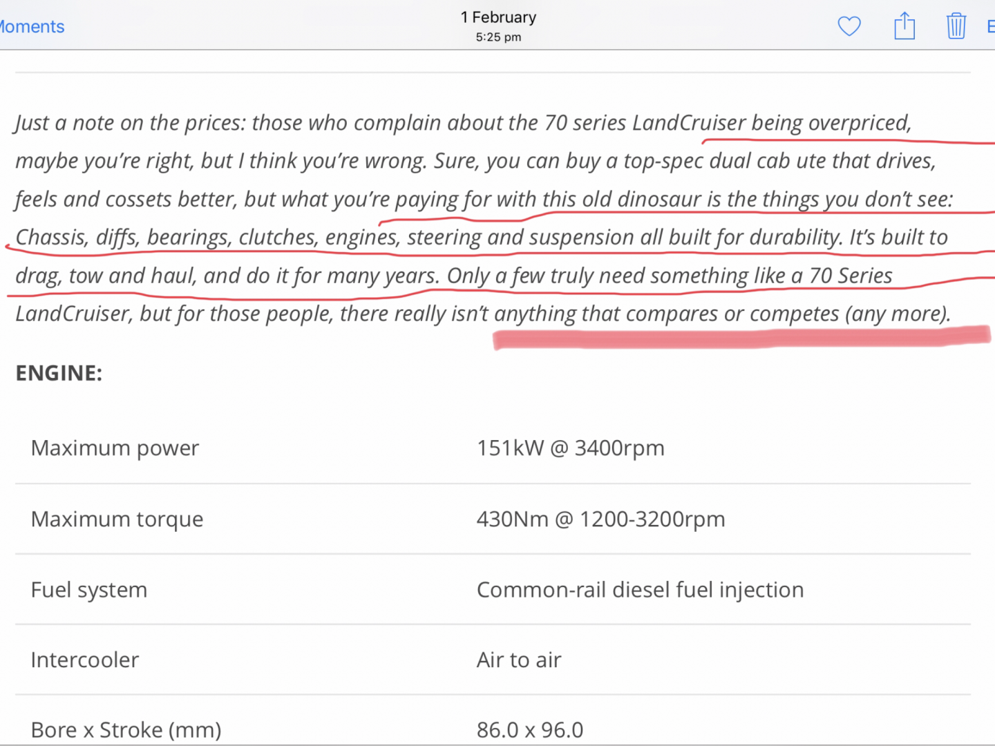 Thank you for this well considered post,but it has nothing to do with the topic under discussion.However,what you write about the 79 is of interest. to me. 1)Overpriced...who cares? With the 79 you get what you pay for. 2) Rough...no denying that,but I could not care less 3)Overrated...Perhaps you could explain why there is a 6 month waiting list to buy new,and why some 79s are getting better prices second hand than new vehicles? Back on topic,I have included a couple of screen shots of relevant information for the apparently delusional amongst us.