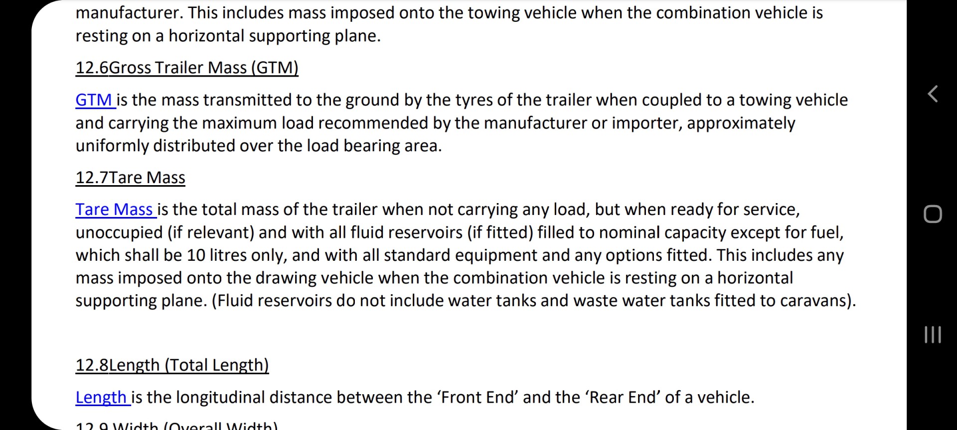 For a caravan the Tare Mass is the total mass of the caravan with no load, unoccupied and with all fluid reservoirs, if fitted, filled to nominal capacity, and with all standard equipment and any options fitted. After market optional add-ons (TV, mattresses, extra gas bottlles, awnings etc) are not inlcuded in the tare mass and are considered as a load, so must be included in your ATM measurement. The tare mass weight of your caravan can be found on the vehicle plate or in the manufacturer's handbook.
