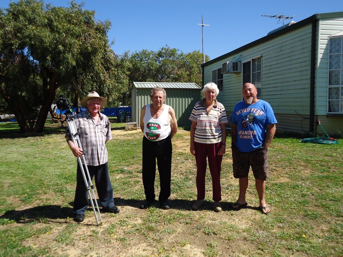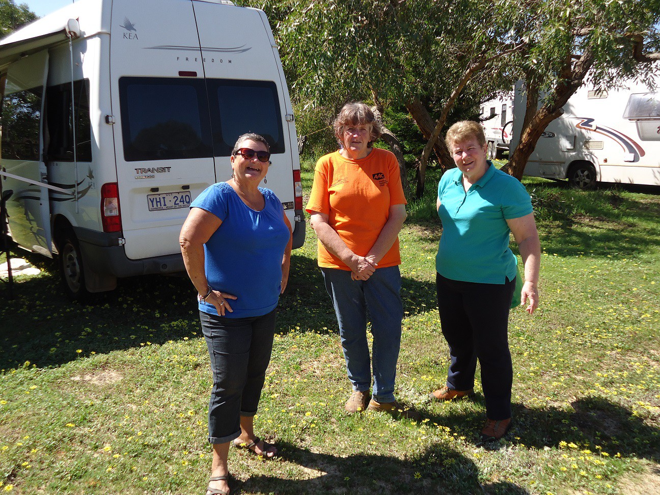 Lower Photo; Darryl (Old boar) Sue (Sufil) Jules, Jayco Gypsy, Sandra (Mrs Old boar) and Carol (Mrs Vic41)