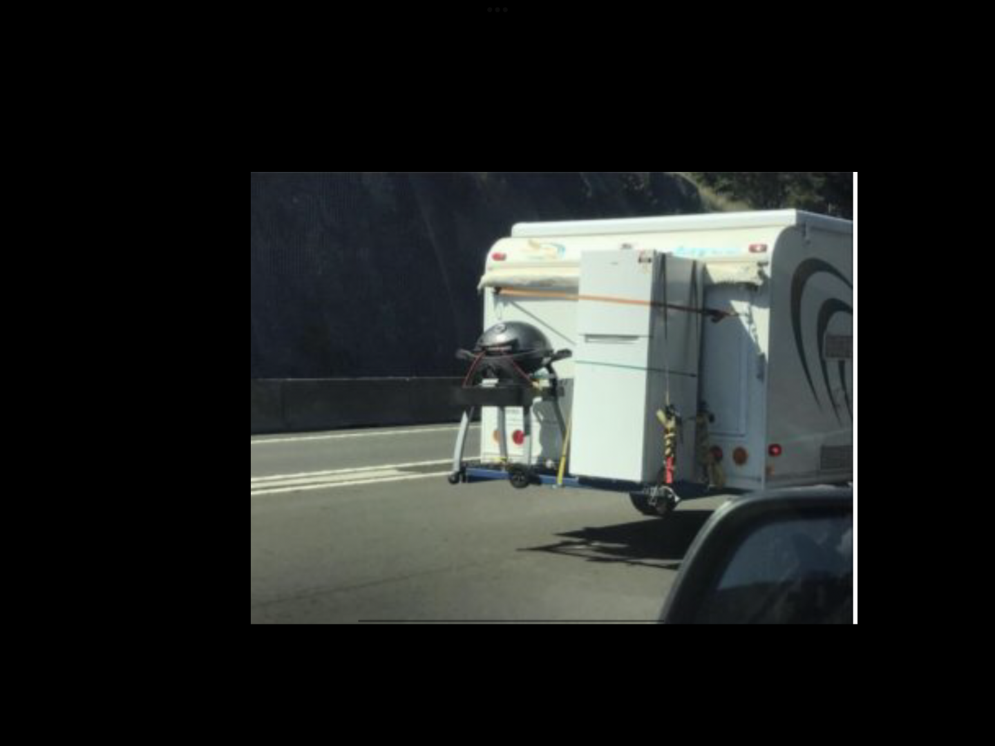 I would like to see what is at the front of that van with the full size fridge on the back! The unbelievable weight on the back must have a serious effect on the towing vehicle. (How do you suppose they even managed to lift it up to tie it on?)