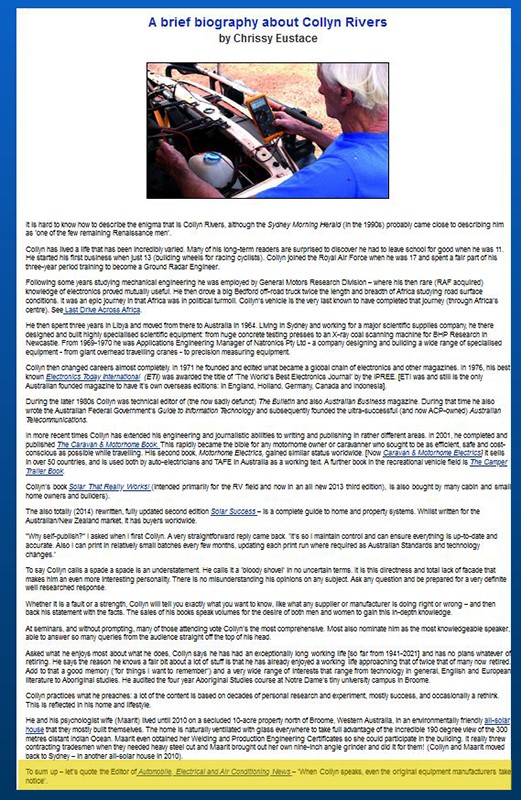 Rivers is a journalist with experience in testing cars for manufacturers in the mid part of last century and has reportedly done some motor homing and caravanning. In other words he was a paid driver with a flair for writing.