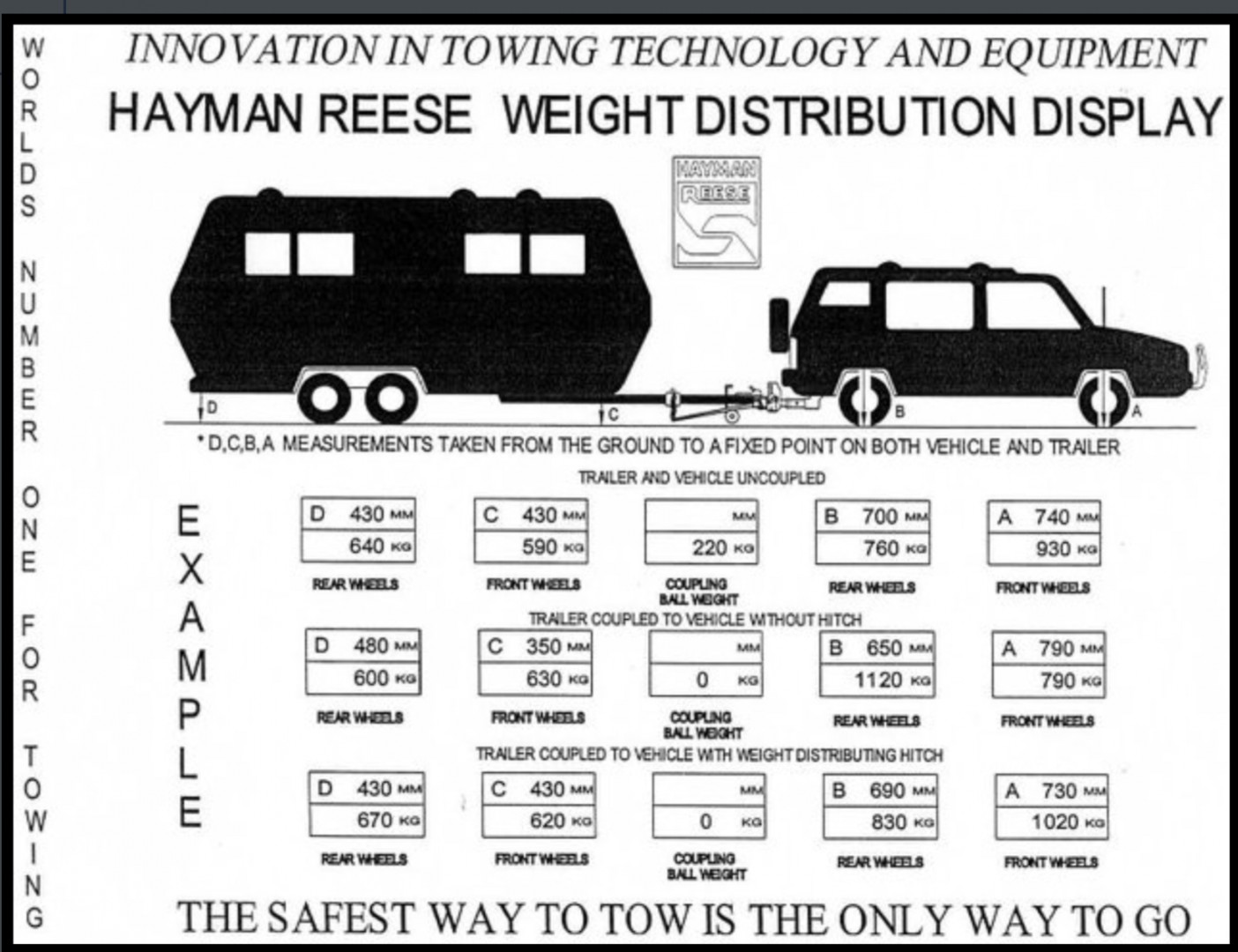 The picture by HR gives the weights and the heights with the separate car and caravan sitting on a weigh bridge.