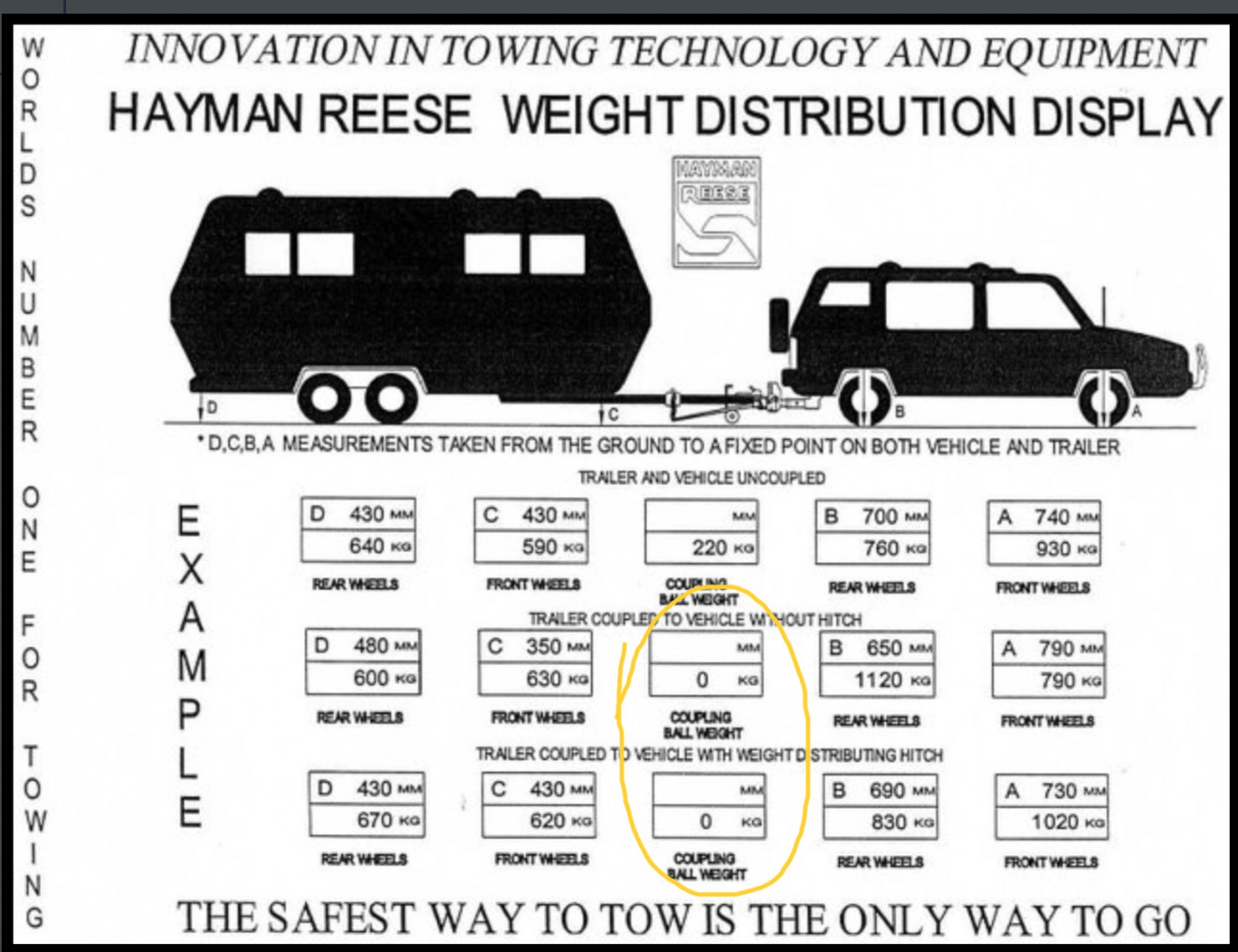 Hi Stu....you probably can be excused because you perhaps have not been closely following this forum,but this rubbish was posted by Brenda and Alan,not too long ago.IF you have a close look at the figures provided,you will notice that ball weight is listed as ZERO.This is an absolute nonsense. The HR WEBSITE lclearly states that towball weight does not change when a WDH is tensioned,but possibly in an effort to help 'learners' to understand the actions of a WDH,the towball weight has been listed as zero on this chart? Spare me! You possibly (probably?) have good intentions,but this rubbish has previously been extensively covered on this forum,and shown to be a nonsense.A caravan with zero towball weight would be uncontrollable, assuming that it is a PIG trailer,which maybe 99% of caravans are? Cheers.
