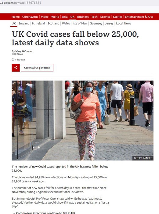 Someone posted on the 25 th. that cases" have sky rocketed" in the UK that is a lie. They have declined by 15% compared to the week before
