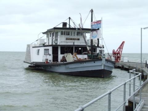 She used to be a ketch, then a river boat with two huge Windmill like wheels on the arse end that looked like catherine wheels spinning.