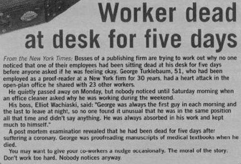 "Don't work too hard, nobody notices anyway."