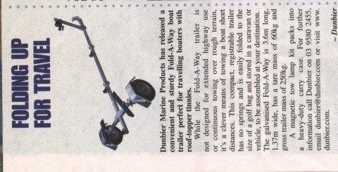 Thankyou to all who had helpful hints about the rhino boat loader.....we have that fitted and the Captain is fitting the electric winch as I type this.......now we have the quandary of acquiring the folding boat trailer!!!! We want one that will pack up small enough to fit on the drawbar / or in our motorbike trailer, or if it works, on top of the boat loader on roof of the trailer. There are a couple listed on ebay, but we are too far away to see them and they do not have agents in our area.