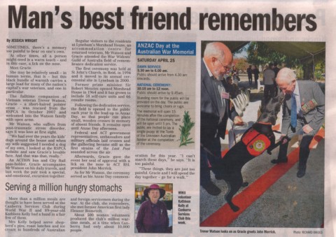 Your http: clicky thing shown in your original post takes you to the front page of the Canberra Times and then click on mans best friend remembers. (for the benifit of others wanting to read the article without a magnifying glass).