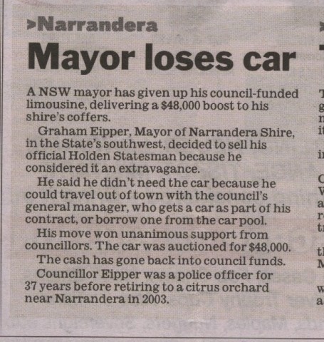 I heard back from a mate in Kempsey, about 30 km's from here, that the Mayor there also gave back his .